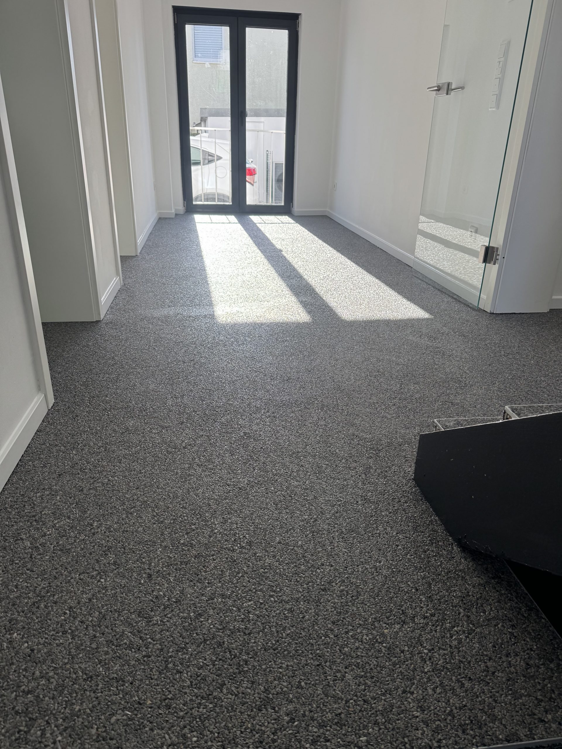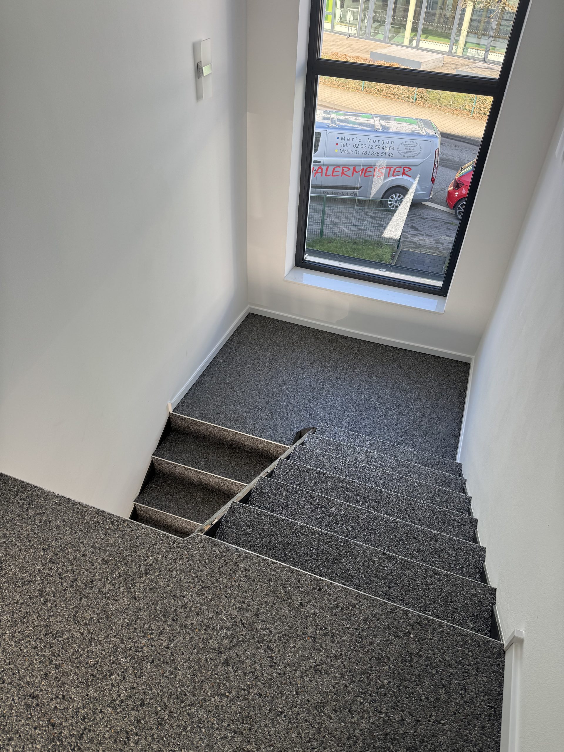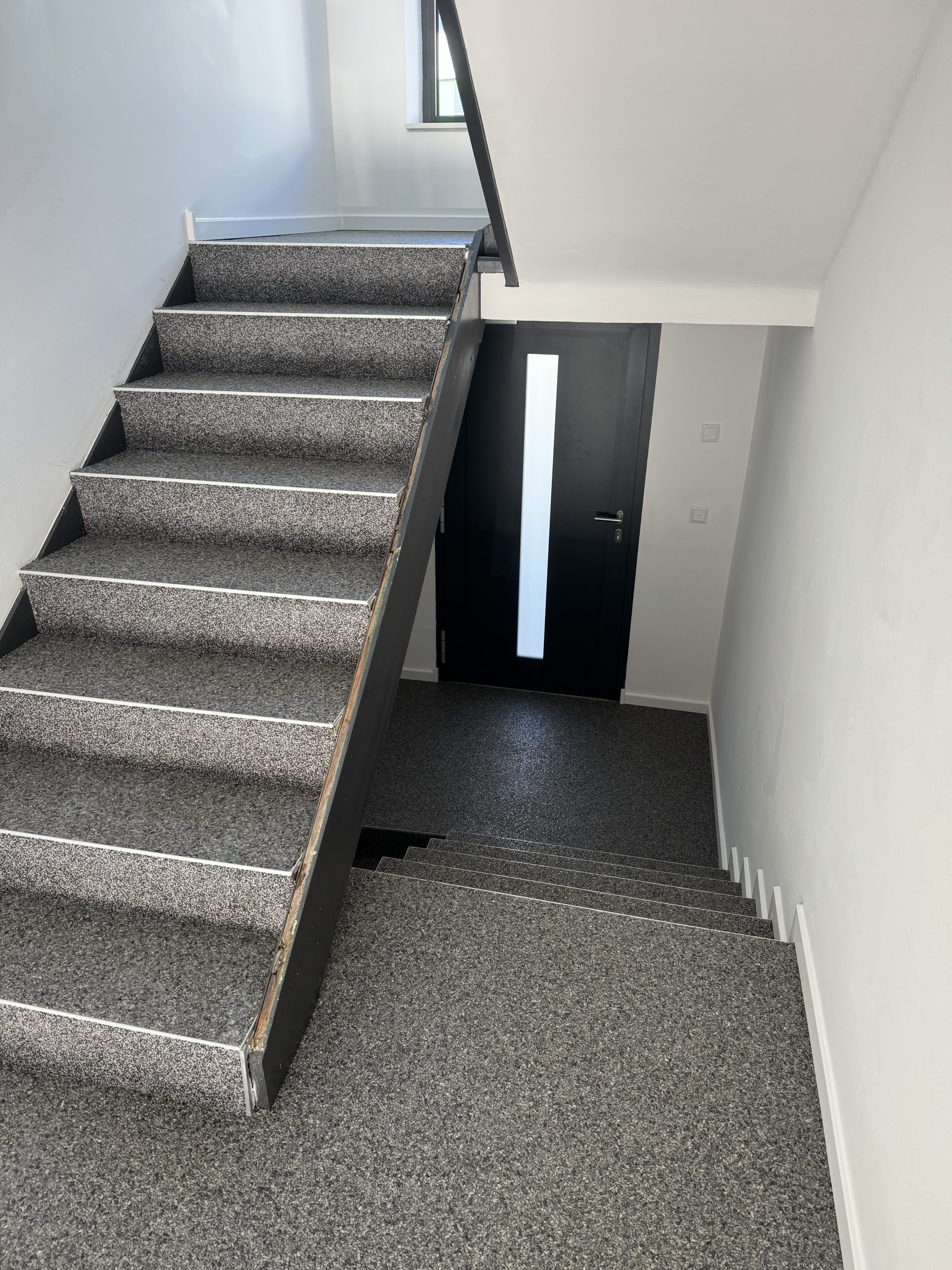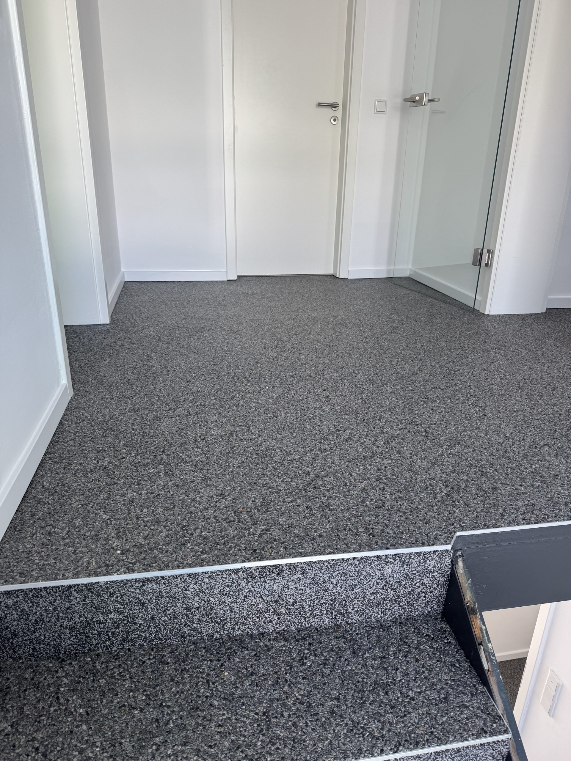 Wir haben im Treppenhaus eines Bürogebäudes einen hochwertigen Steinteppich verlegt und damit Optik, Haptik und Langlebigkeit auf ein neues Niveau gehoben. Durch sorgfältige Vorbereitung, fachgerechte Verlegung und eine schützende Versiegelung entsteht eine robuste, fußbodenfreundliche Oberfläche mit moderner Ausstrahlung.