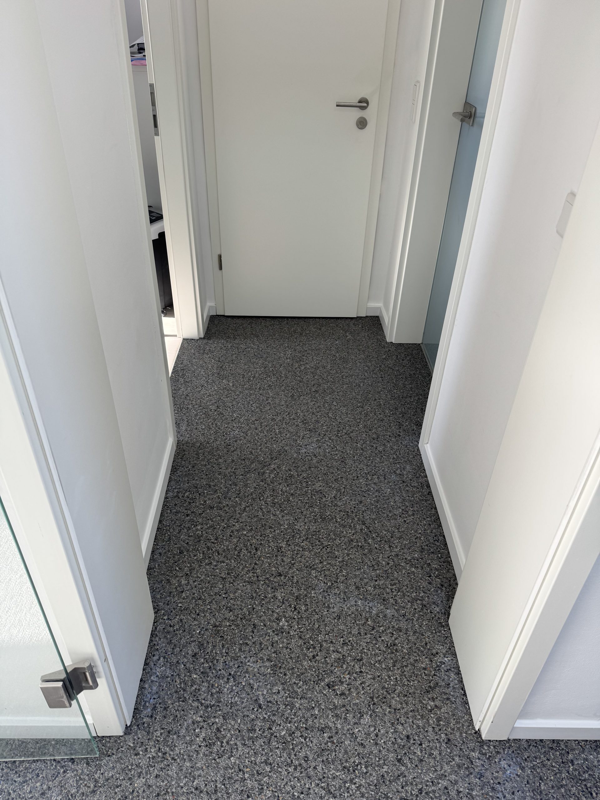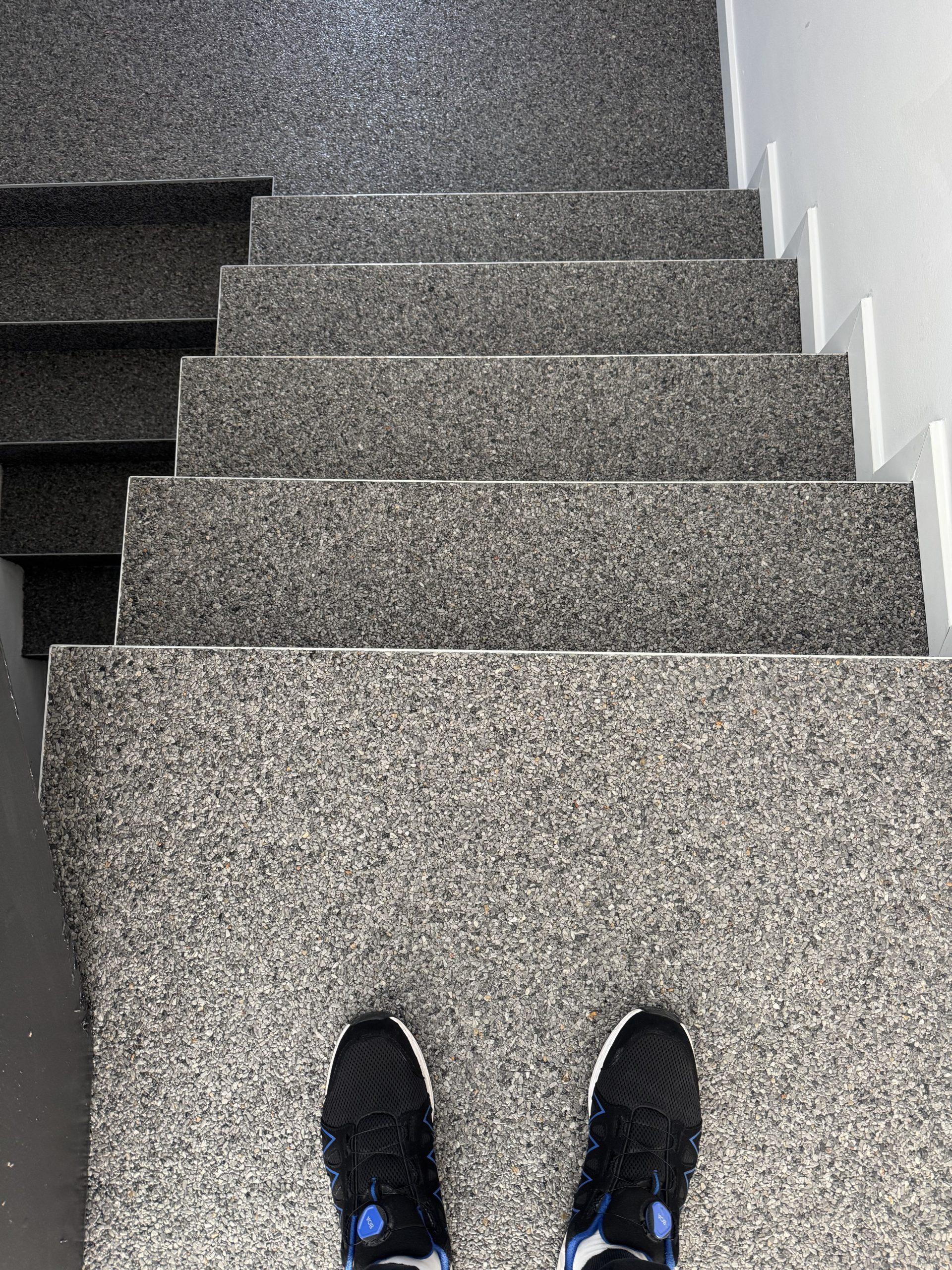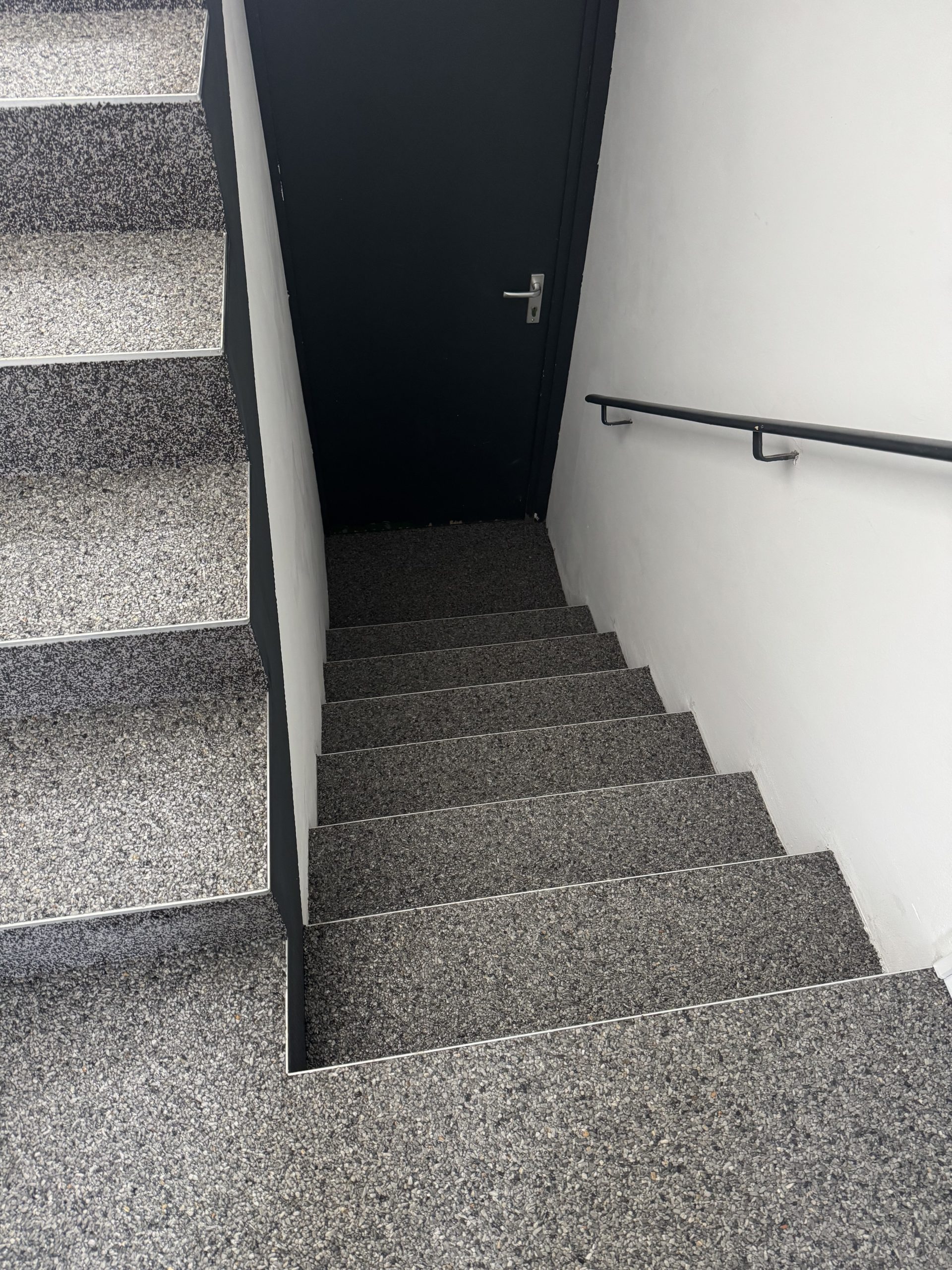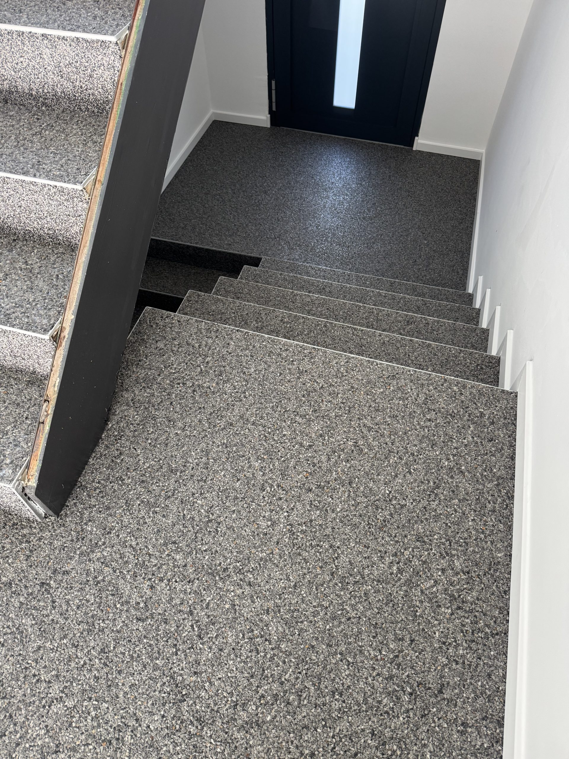 Der Einsatz eines Steinteppichs in einem Treppenhaus bietet eine hygienische, langlebige und ästhetisch ansprechend gestaltete Oberfläche. Durch fachgerechte Vorbereitung, präzises Verlegen der Schichten und eine passende Versiegelung erfüllen wir hohe Hygienestandards, angenehm zu reinigen und robust im täglichen Betrieb.