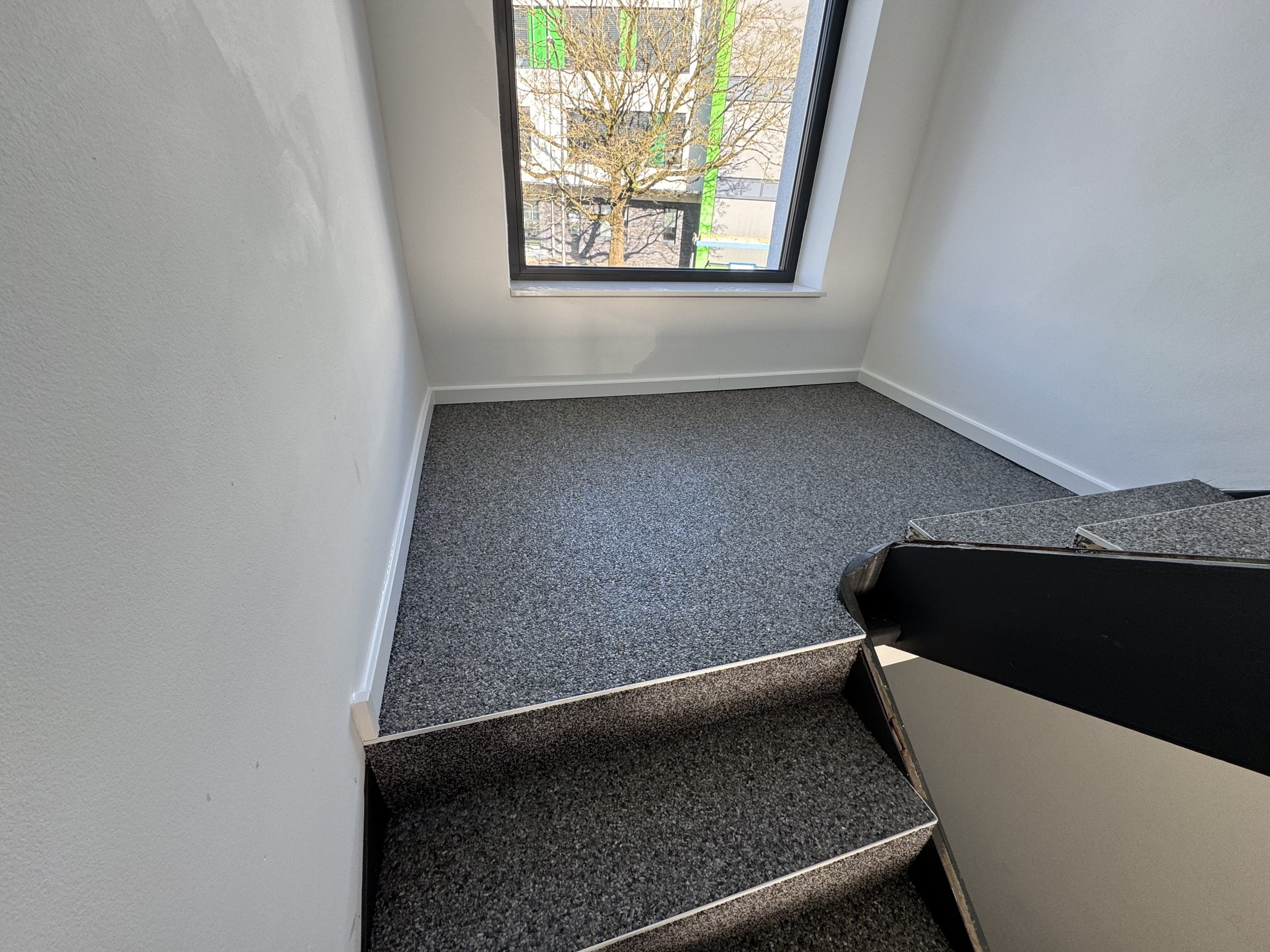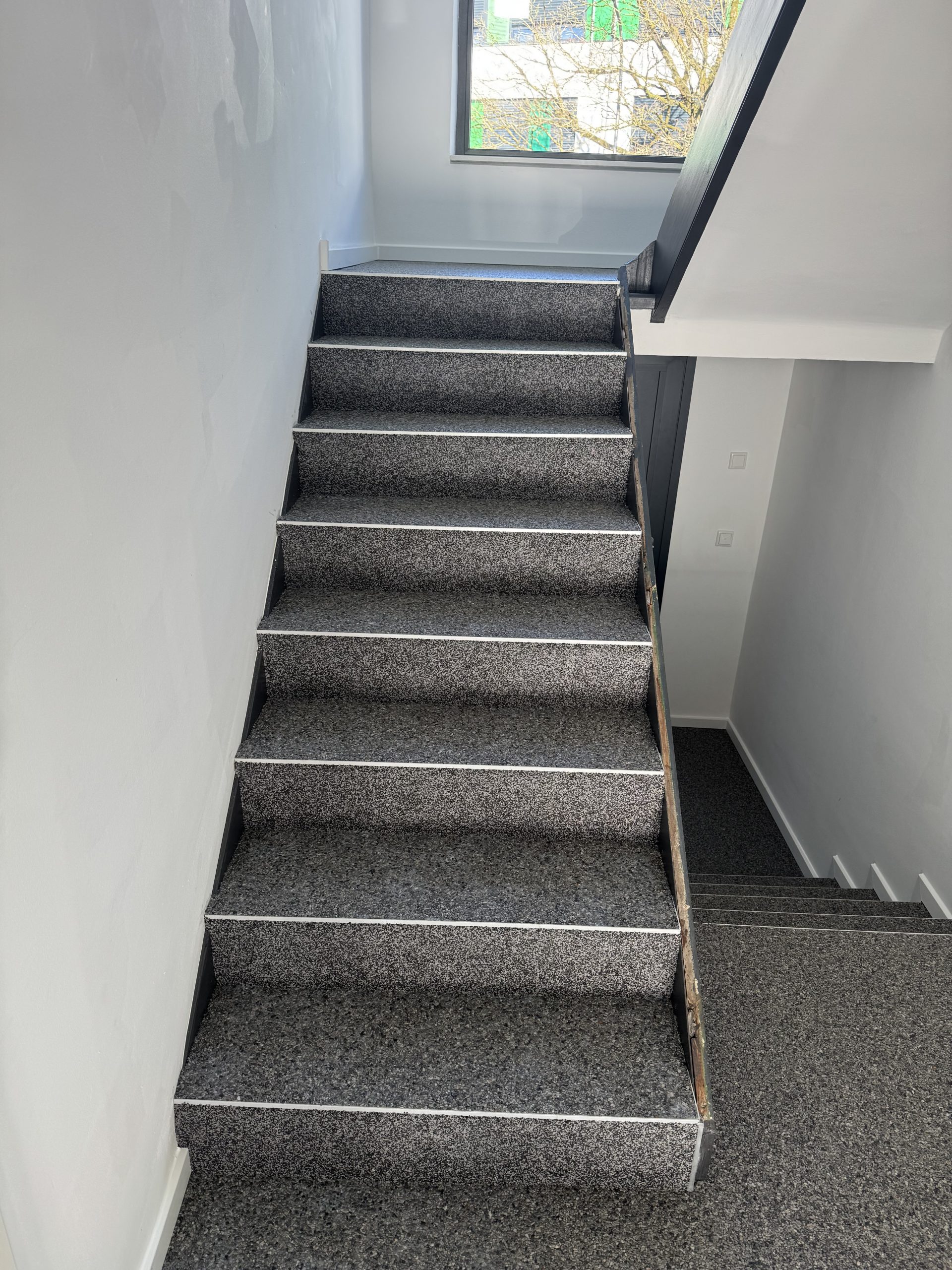 Modernes Treppenhaus im Bürogebäude – neuer Steinteppich verlegt